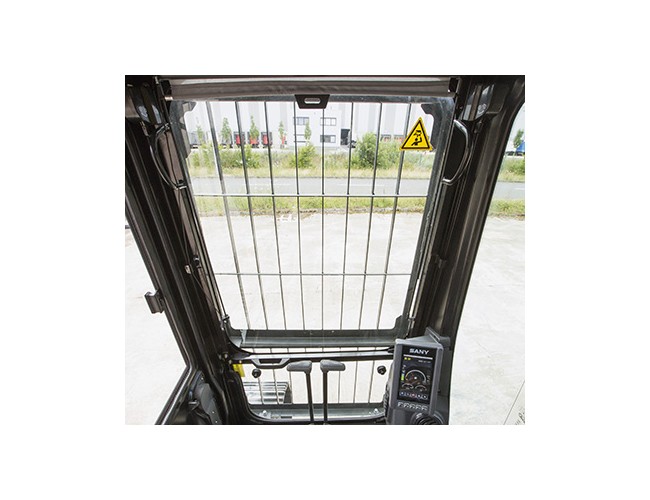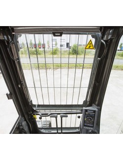 Úplne bezpečné v každej situácii – čelné sklo je vybavené nezakrývajúcou ochrannou mriežkou, ktorá chráni pred padajúcimi predmetmi a zároveň zachováva dostatok voľného priestoru, ktorý umožňuje jednoduché čistenie okien. Integrované svetlomety zaručujú najlepší možný výhľad na pracovnú plochu aj v tých najhorších svetelných podmienkach. O ochranu pred oslňujúcim slnečným žiarením sa starajú slnečné rolety na strešnom paneli a čelnom skle, ako aj posuvné závesy vzadu a na bokoch.