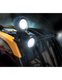 Vo svetle reflektorov – štandardné pracovné svetlá LED v prednej a zadnej časti kabíny optimalizujú zorné pole a viditeľnosť pri zlých svetelných podmienkach. LED osvetlenie strešného plášťa s tromi voliteľnými nastaveniami poskytuje podľa potreby svetlo priamo nad a za operátorom. Voliteľné pracovné svetlá výložníka zaručujú optimálne osvetlenie nad strojom pri nakladaní do výšky, čo zlepšuje viditeľnosť a bezpečnosť.